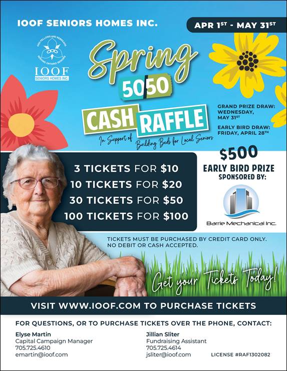 IOOF Senior’s Home Inc., 50/50 Draw – One Week Left!